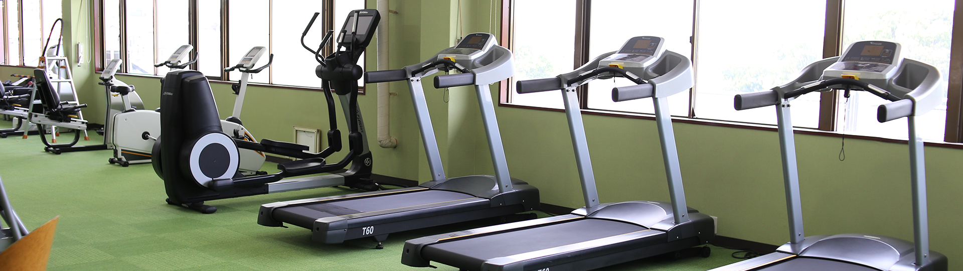 ジムではいろいろなトレーニング機器を備えております。